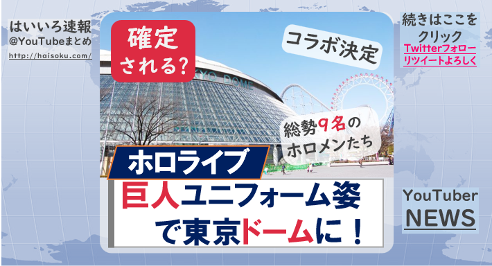【【確定される?】ホロライブ、巨人ユニフォーム姿で東京ドームに!コラボ決定!総勢9名のホロメンたち】の続きを読む1: はいいろ速報@youtubeまとめ 2023/04/28(金) 20:22:28.89 ID:GWBg432c94/28(金) 20:03配信