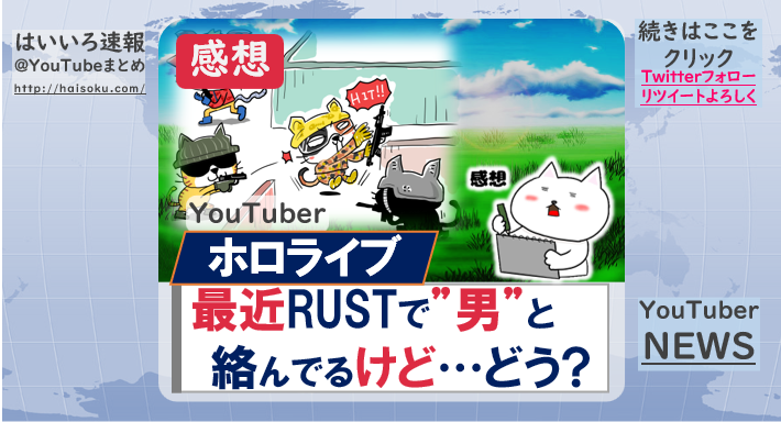 【【感想】ホロライブが、最近RUSTのスト鯖で”男”と絡んでるの見てどう思ってる?】の続きを読む1: はいいろ速報@youtubeまとめ 2023/04/28(金) 04:09:03.88 ID:RuICKCDj0辛い、、、ですよね?