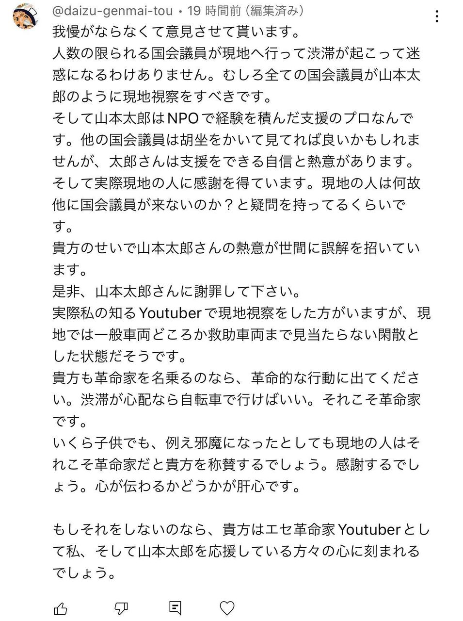 山本太郎もこんな奴が熱狂的な支持者なのかと思うと不憫やわ