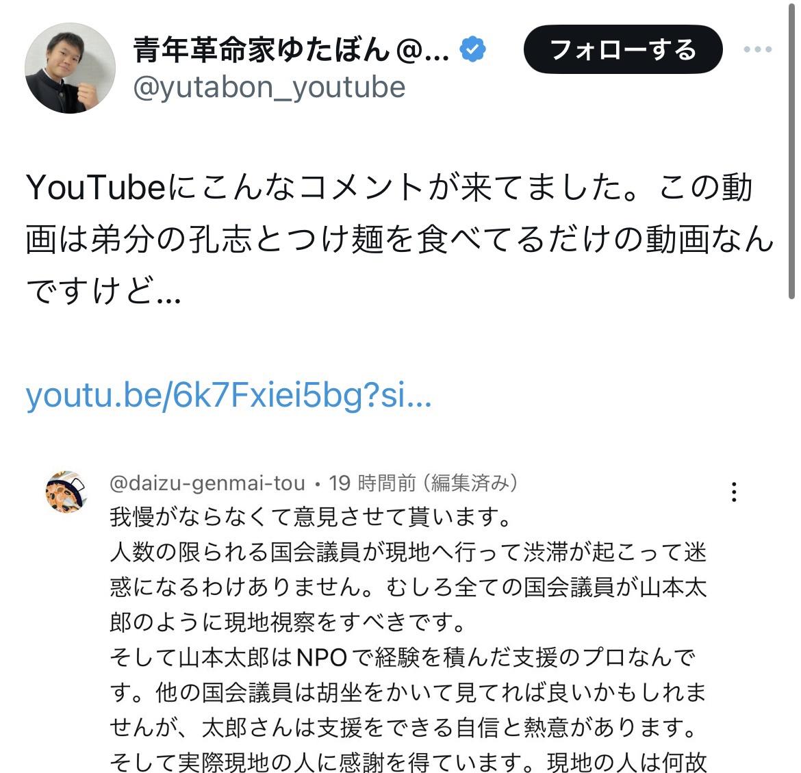なんでツイッターやなくて、つけ麺食ってる動画にコメントしたんや?
