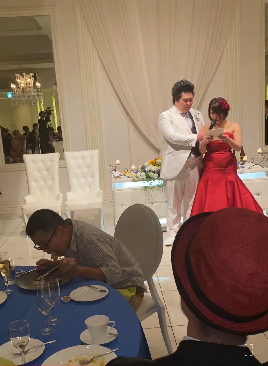 新婦が泣きながら家族への手紙?みたいなの読んでる中で飯食ってる写真ホント好き