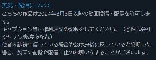 こちらの作品は2024年8月3日以降の動画投稿・配信を許可します。
