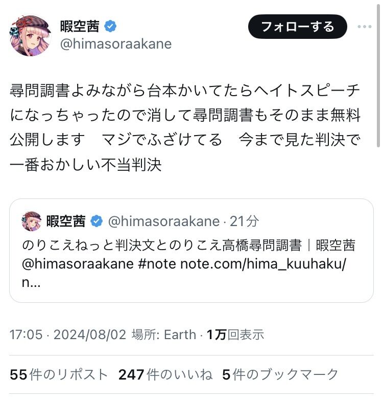 https://x.com/himasoraakane/status/1819282341841256519