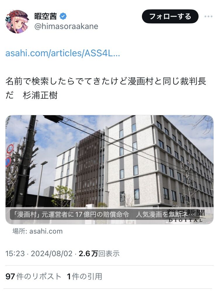漫画村と同じ裁判長だ…てどういう意味なん?