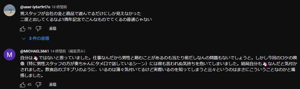 じゃなきゃ、配信で男の声が入ったくらいで謹慎になってない