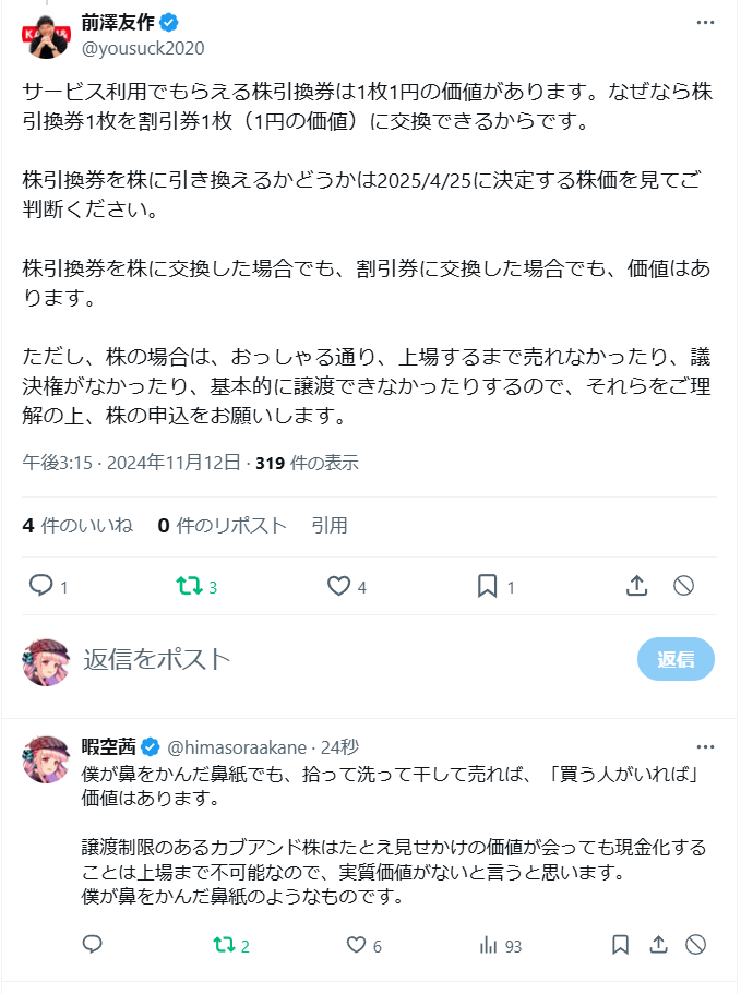 前澤「上場できないリスクはあるよ」