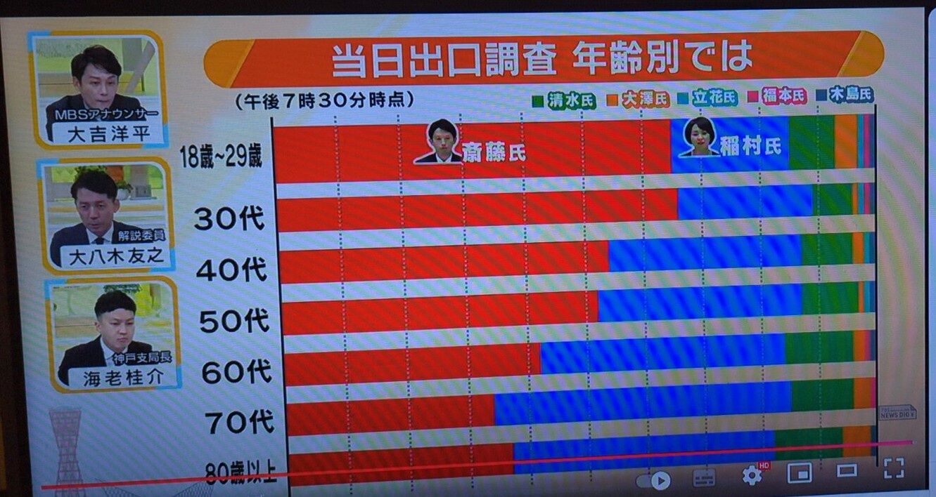 70代は稲村の方が多かったにも関わらずこんな感じの切り抜き偏向報道ばっかやってっから信用されなくなるんだぞw