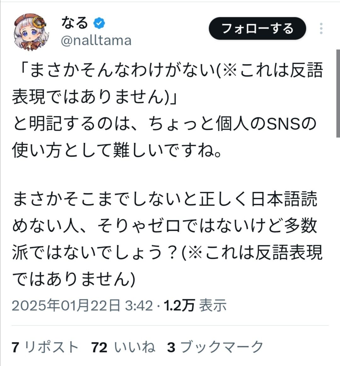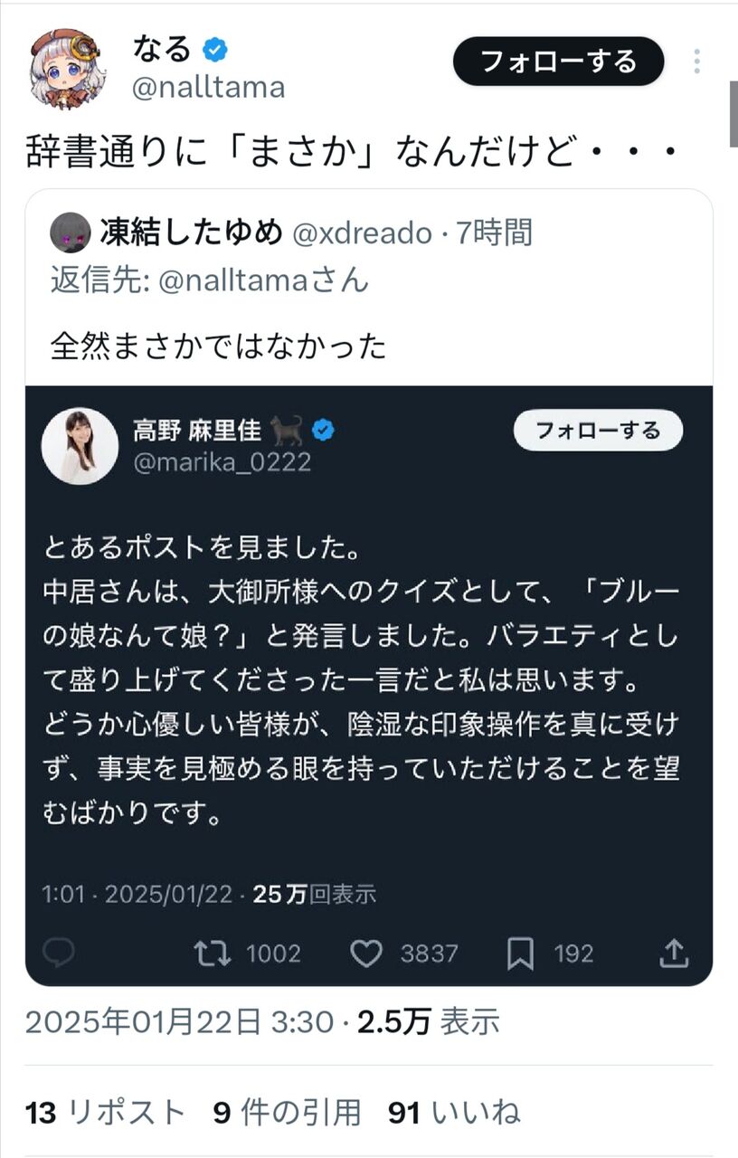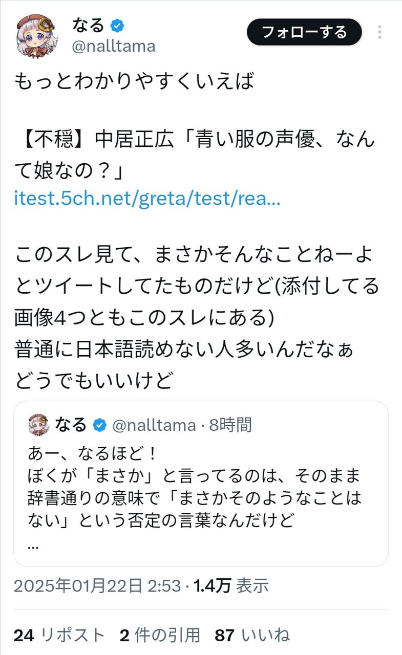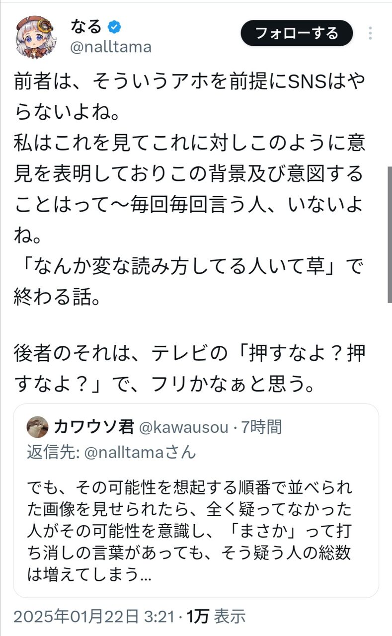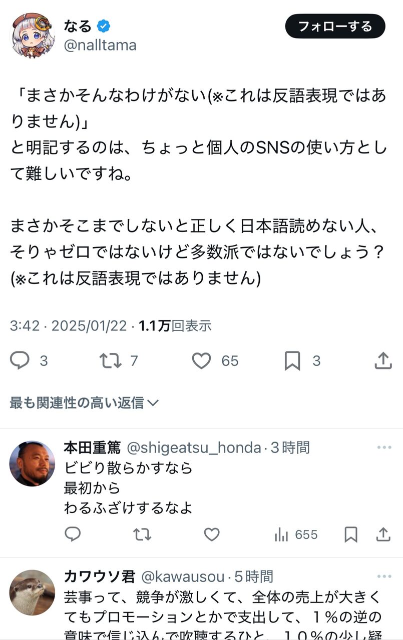 「なる」はちゃんと自分のポスト訂正謝罪しろよな