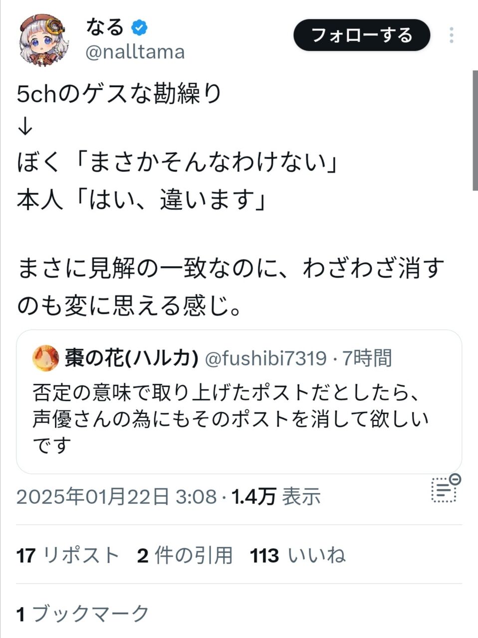 【悲報】表現を守る暇空さんのお友達のなるさん、デマで声優に迷惑をかけるがすっとぼける