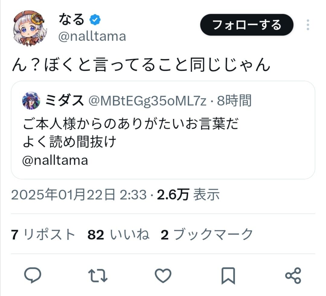 88 名無しさん@お腹いっぱい。 (スププ Sd1f-3anD [49.97.28.129]) :2025/01/22(水) 10:59:41.00 ID:ZPlKWWzMd