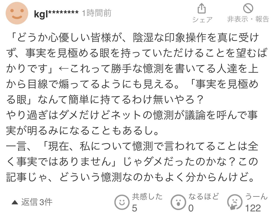 どうせ違うと断言しても「断言するのは図星の証拠」となるんでしょ?