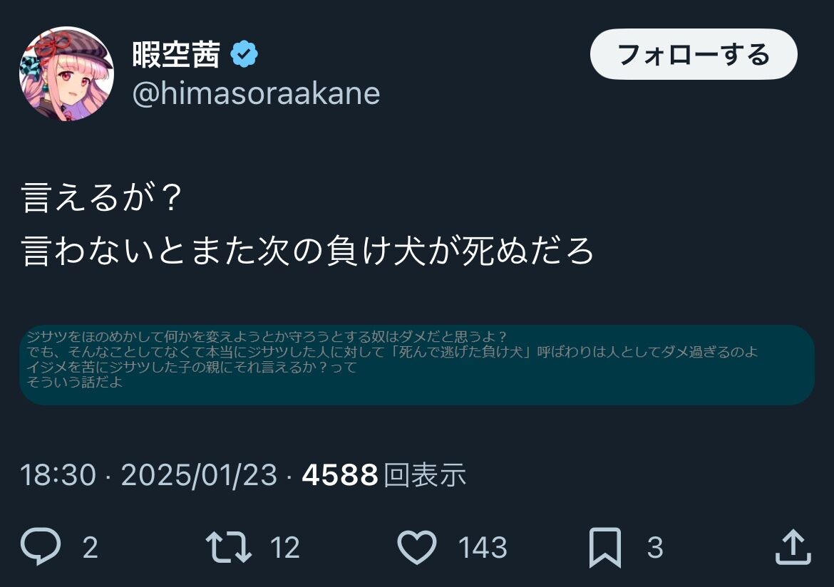 このツイートから読み取れるのは暇空がいかに負けず嫌いであるかってことだけでしょ