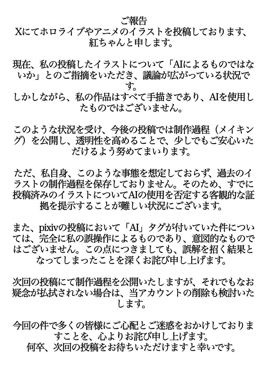 AI絵じゃなかったとしても疑われてしまった以上はやむを得ない対応だな