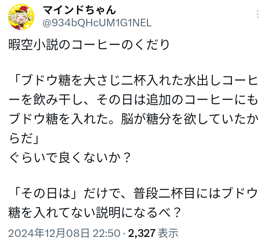 8 名無し物書き@推敲中? :2025/04/30(水) 22:05:48.10