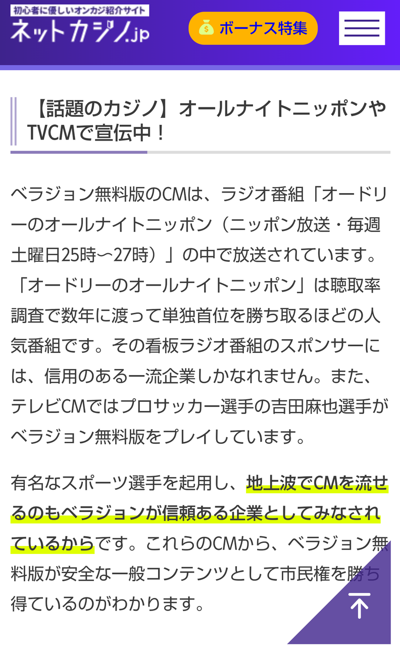 オールナイトニッポンとショーアップナイターでベラジョン無料版のCM流しまくりCM大賞まであげたのにその後関連ページをしれっと全削除