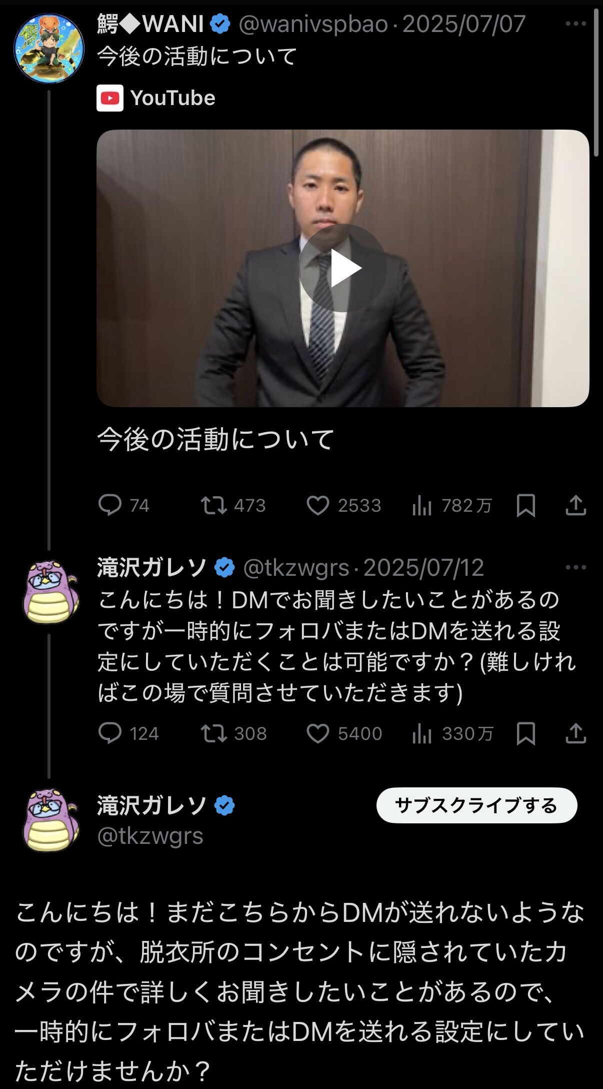 YouTuber「ちゃんねる鰐」に盗撮疑惑が浮上。謝罪動画のコメント欄が閉鎖され、詳細が謎に包まれる。