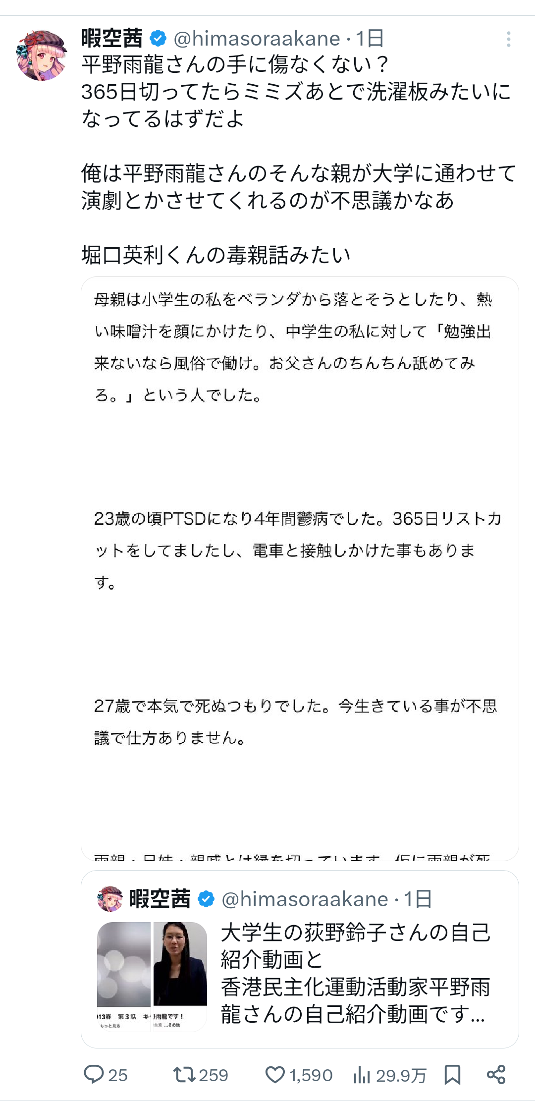4.暇空茜氏「平野さん、もしかして別人にすり替わってね?」