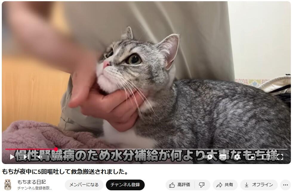 人気猫系YouTubeチャンネル「もちまる日記」が、2025年8月6日に動画を公開し、保護した野良猫を動物病院で診察してもらっている際の映像を公開した。