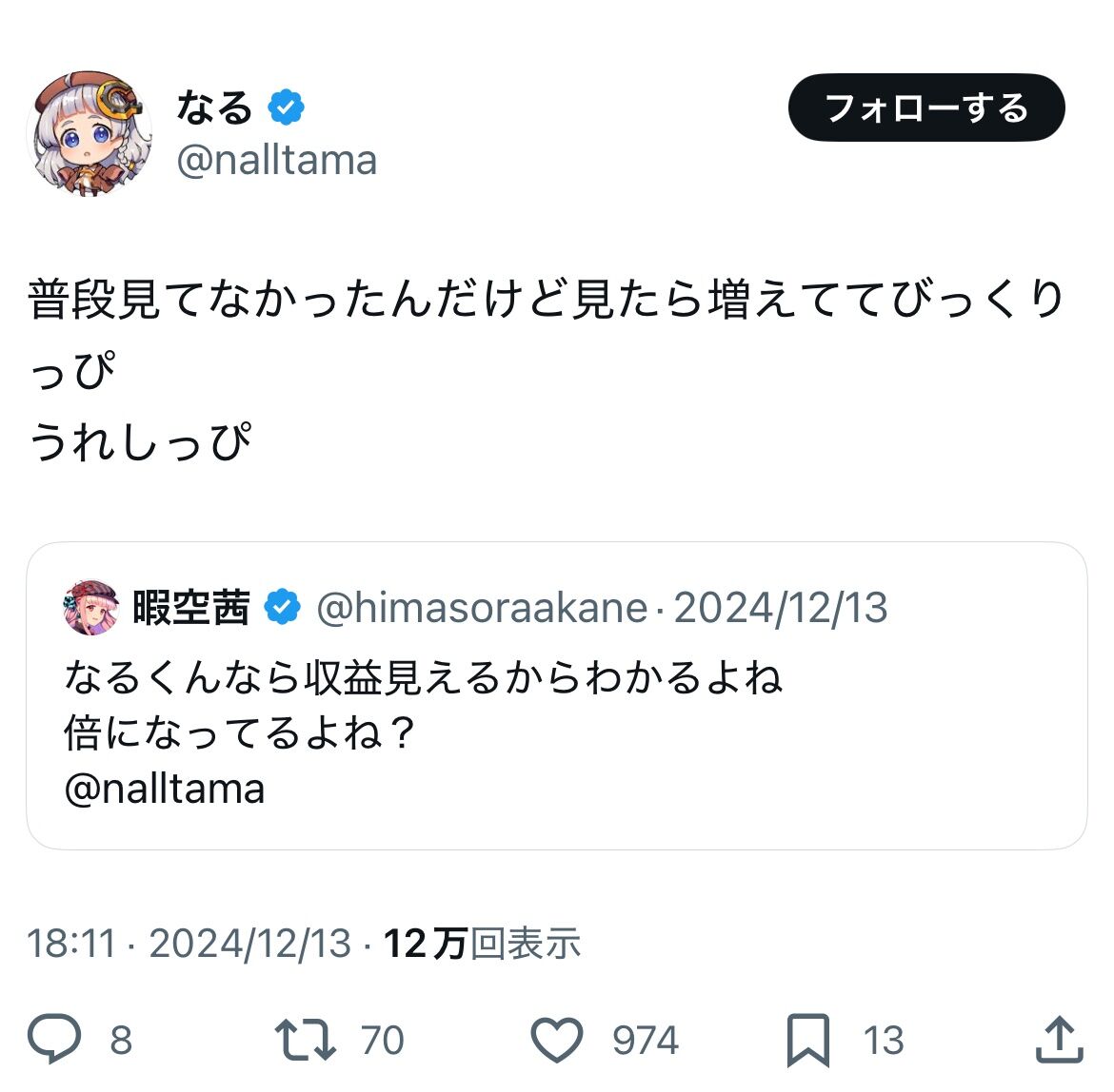 なるくんなら収益見えるからわかるよね