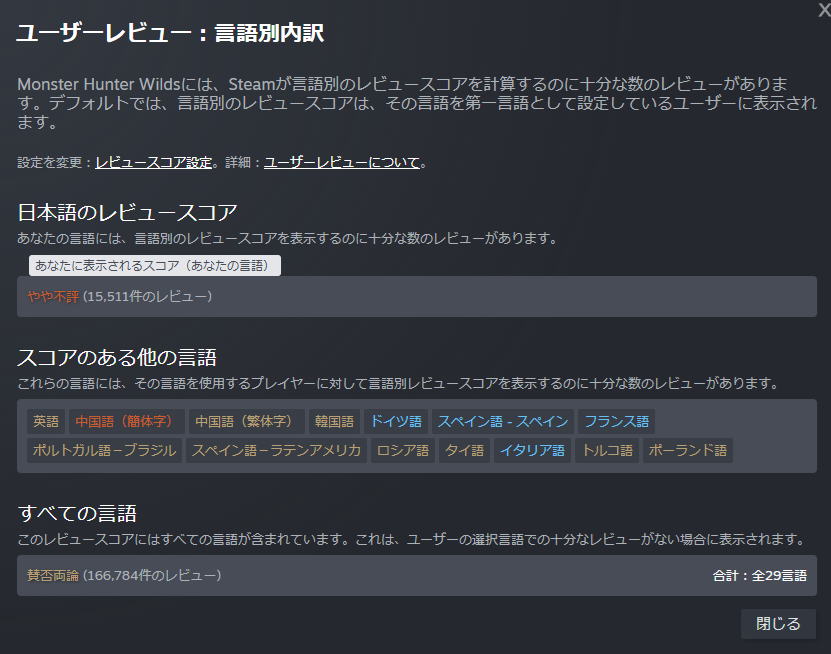 Steamの仕様が変わって日本人が低評価爆撃していたことがバレた模様