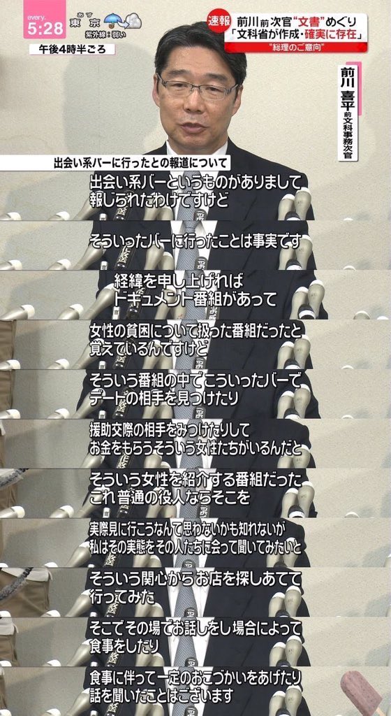 前川喜平さんは、出会い系バーで独自の貧困調査(女子高生を中心に)を行い、貧困JKにお小遣いをあげたやさしいおじさんです。