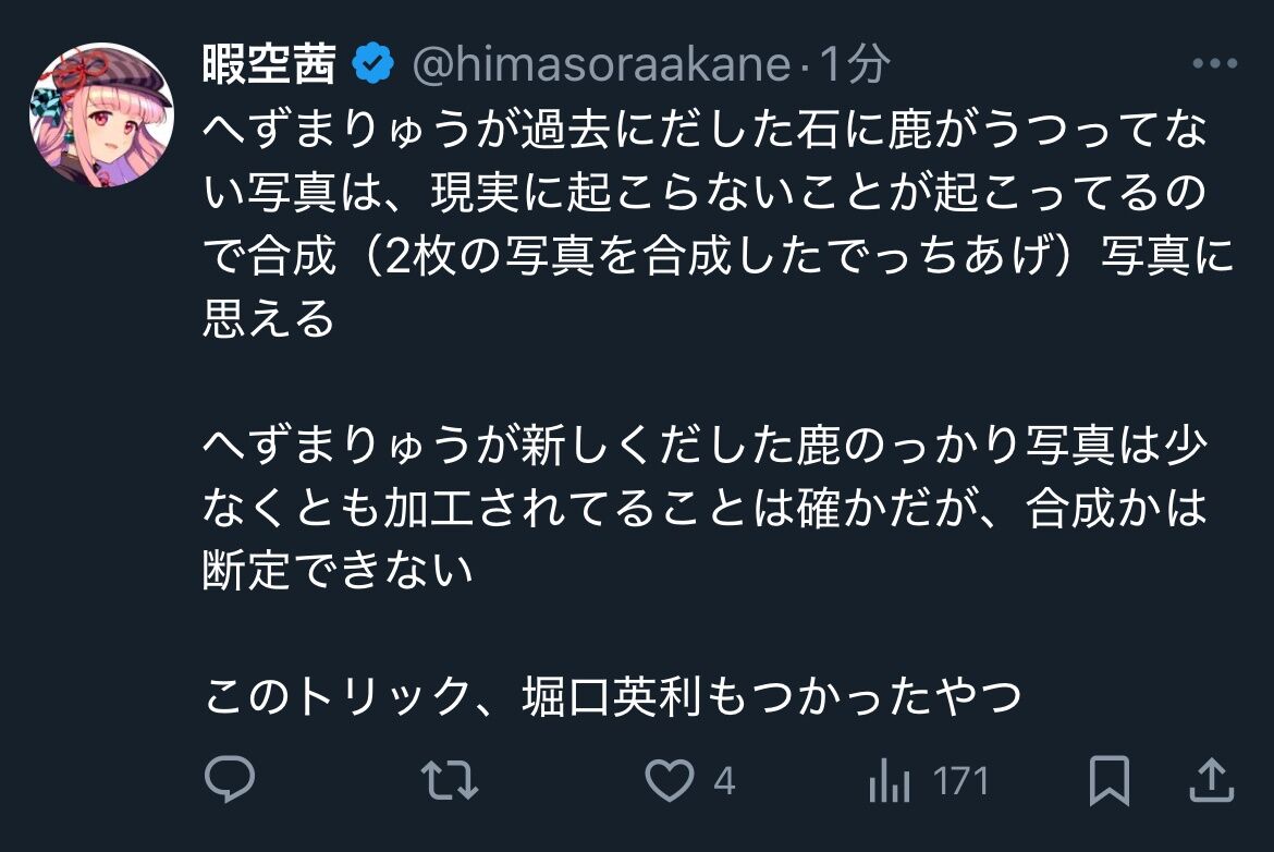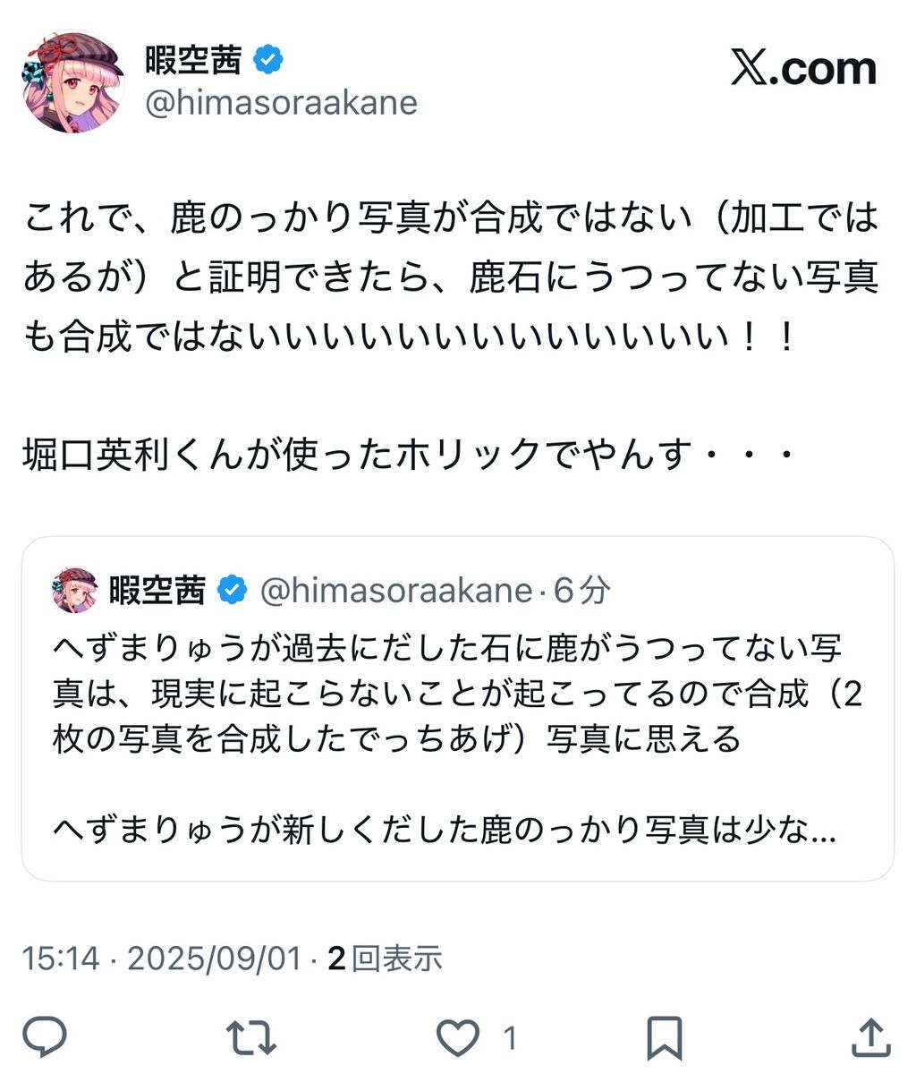 自称天才探偵の暇空茜氏、過去数々のAI加工を見破って来た経験から(実際にはAI加工ではありません。)、へずまりゅう奈良市議の投稿写真はAI加工だと見抜く。彼らの独特なやり取りが話題に。