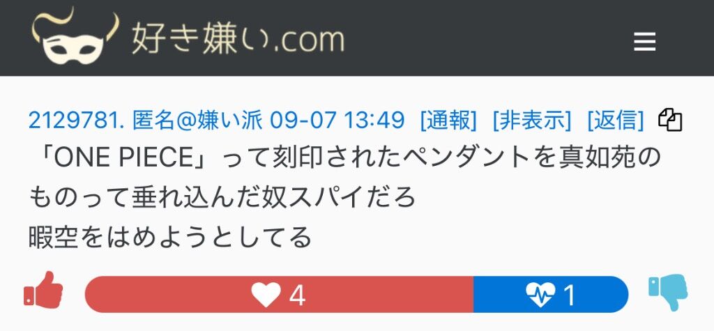 暇さんを嵌めるためにワンピースのペンダントを真如苑と偽って出品した奴がいるとは
