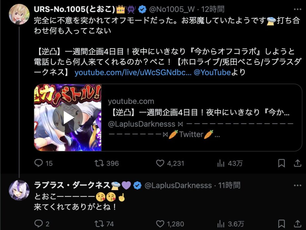 ぺこらとラプラスのコラボで人脈の違いが浮き彫りに。ファンの反応や比較が話題に。