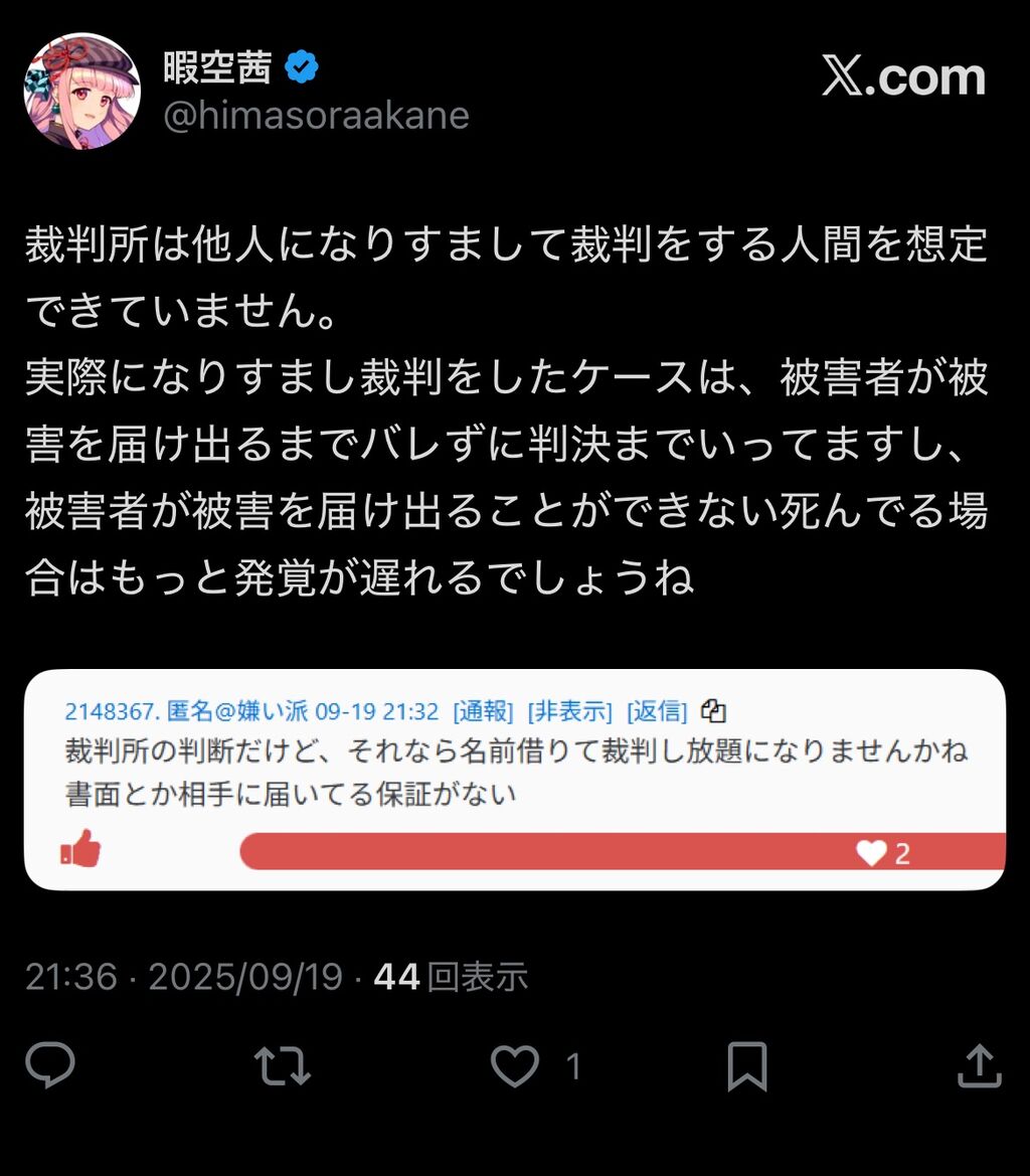 暇空茜氏が司法の問題、特に死者への成りすまし裁判を提起し、その盲点に切り込む重要な議論を展開する。