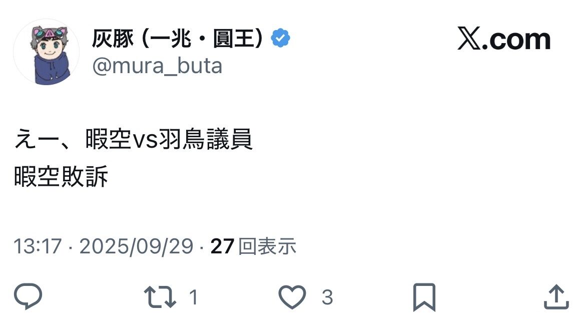 あのこれさ⋯ひょっとして暇空さん完敗という判決が出た?