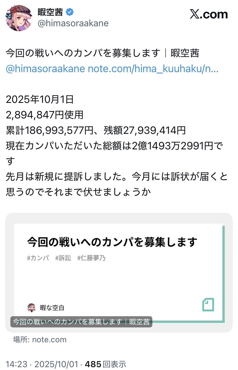 暇空茜氏に注目が集まる中、カンパ金に対する疑問が浮上。果たしてカンパの真実は?