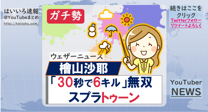 【【ガチ勢?】キャスター檜山沙耶、スプラトゥーン「30秒で6キル」無双】の続きを読む1: はいいろ速報@youtubeまとめ 2023/05/04(木) 19:53:36.89 ID:6jwqy21T0ゲーム好きで知られるウェザーニュース気象キャスター、檜山沙耶(29)が30日、ニンテンドースイッチ「スプラトゥーン3」のプレイ動画を自身のツイッターにアップした。