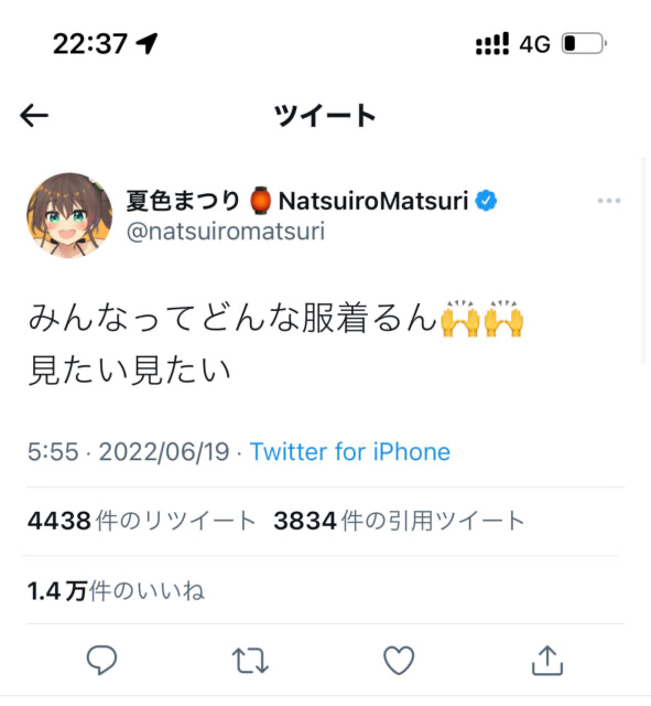 | 夏色 まつり(なついろ まつり)は、日本のバーチャルYouTuber、バーチャルアイドル。所属事務所はホロライブプロダクション。 チアリーディング部に所属する新入生で、元気で明るく人懐っこい性格から友達が多く誰とでも仲良くなれ、お祭りやイベントごとなど楽しいことが好きである。… 113キロバイト (12,137 語) - 2024年6月12日 (水) 11:18 |