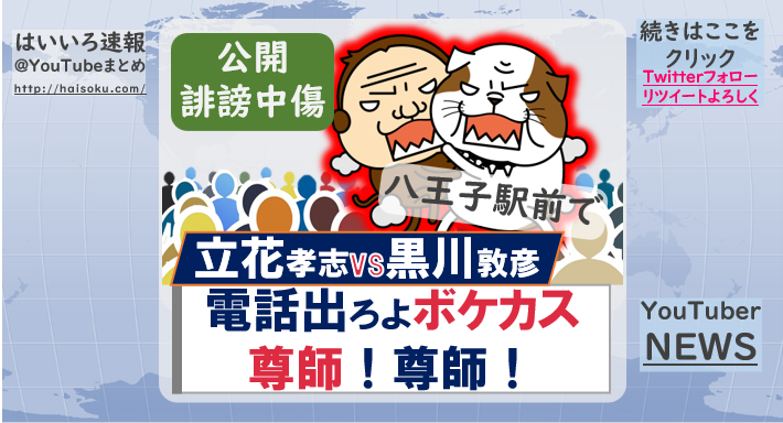 【【公開誹謗中傷】駅前バトル!・立花孝志vs黒川敦彦「お前電話出ろよボ毛カ酢」「尊師!尊師!」】の続きを読む1: はいいろ速報@youtubeまとめ 2023/04/17(月) 20:59:44.85 ID:2iMBcmdD4/17(月) 15:00 よろず-