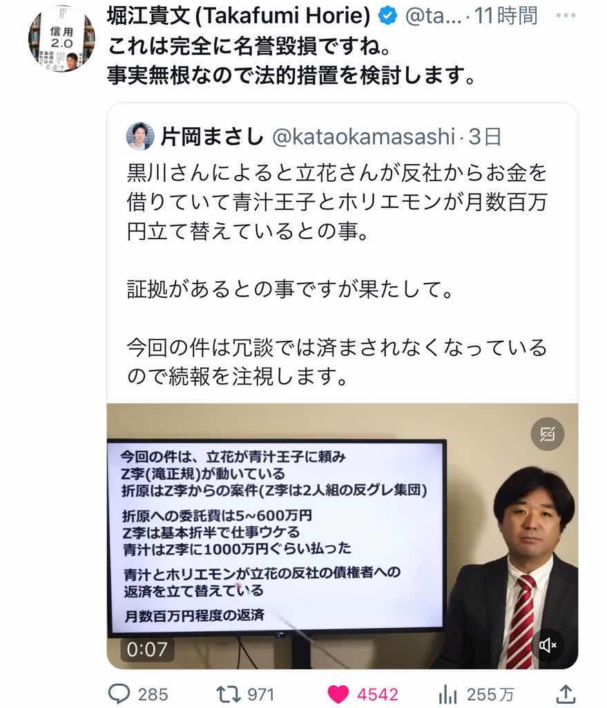 立花氏は「君、なぜ電話しても出ないの?YouTube広告出せへんのやったら質問答えてもいいよ。なんで君のお金稼ぎを協力せなあかんの?」と、黒川氏の公開質問をYouTubeの再生回数稼ぎと一刀両断。黒川氏は「こっそり話すことはしませんって言いましたよね。公明正大にやりましょうよ」とアピールした。